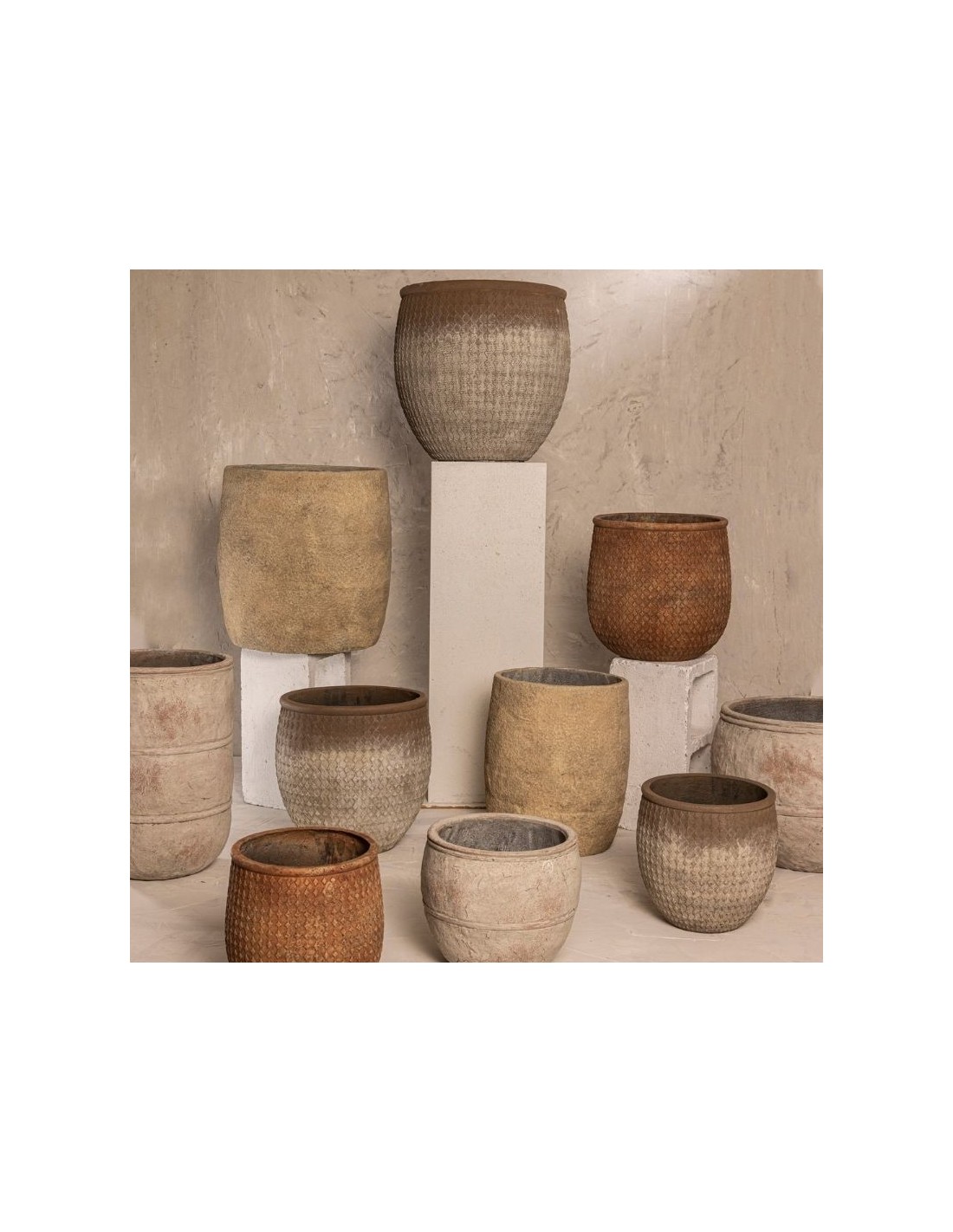 Maceta de Cemento Texturado Set x3 cod.170600