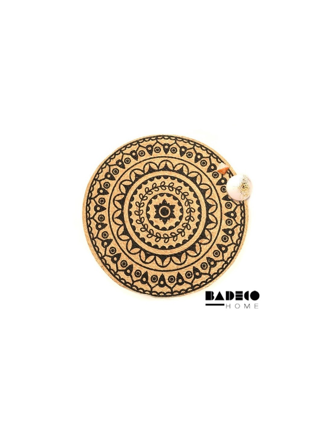 • Alfombra 100% yute natural con mandala impreso