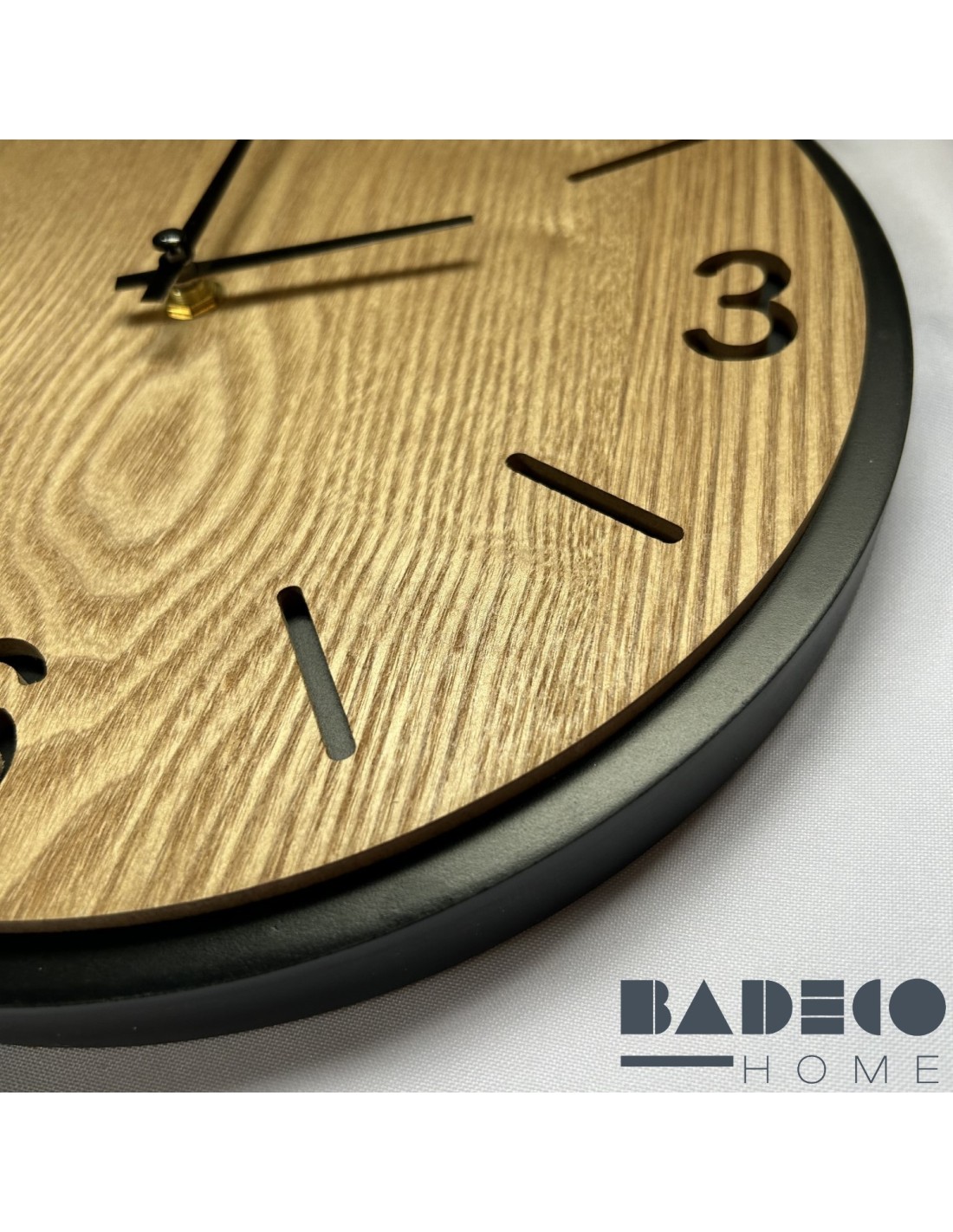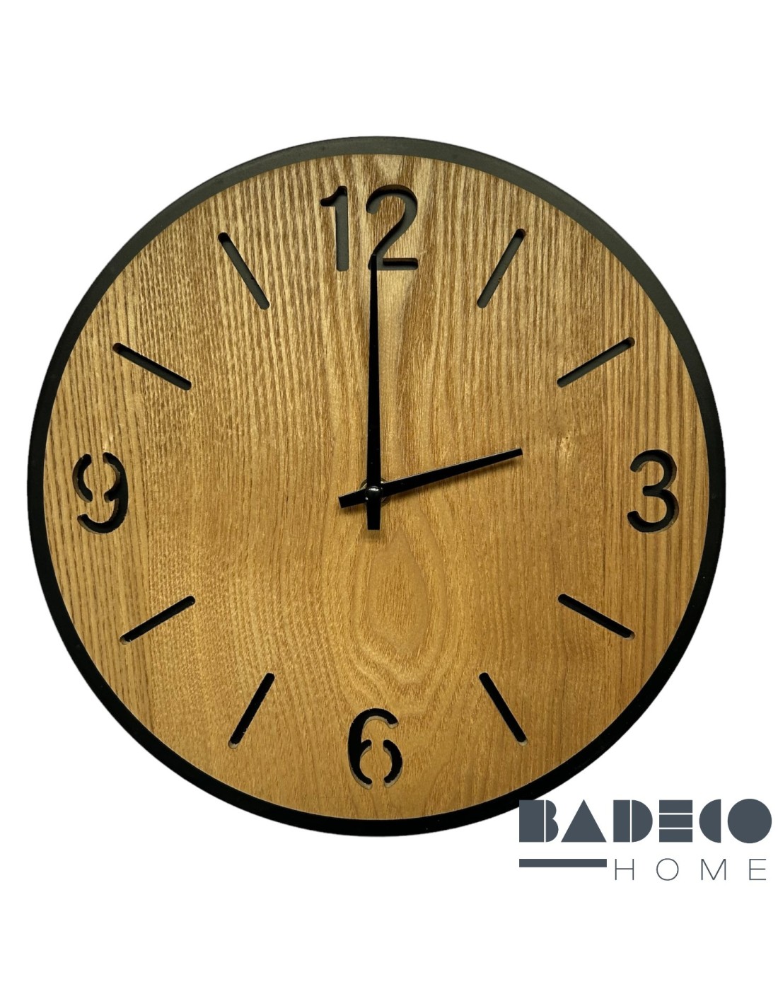 RELOJ DE METAL CON MADERA - NÚMEROS CALADOS EN MADERA